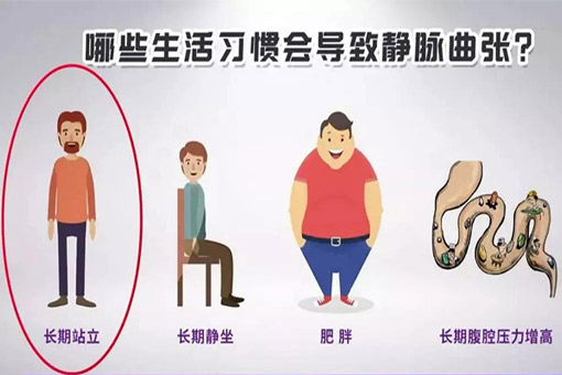 下肢静脉曲张病因:静脉壁结构异常及静脉高压是下肢静脉曲张的主要发病原因。诱发因素主要是长期重体力劳动、久坐、长时间站立、引发的。